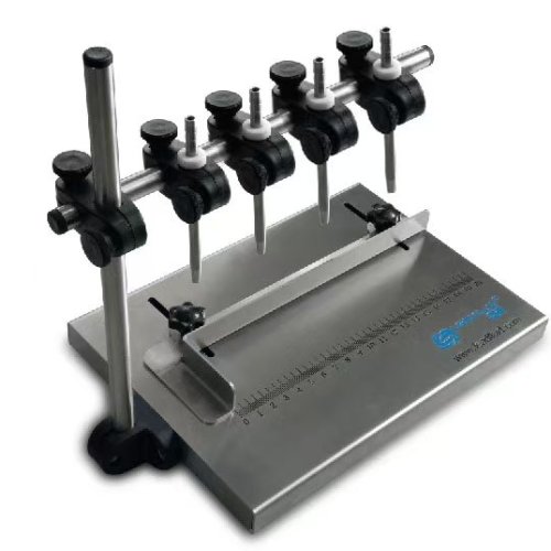 3. Precise positioning of the filling stand . Consistent filling with position memory. The worktable is equipped with a laser-printed scale for precise positioning and position memory.